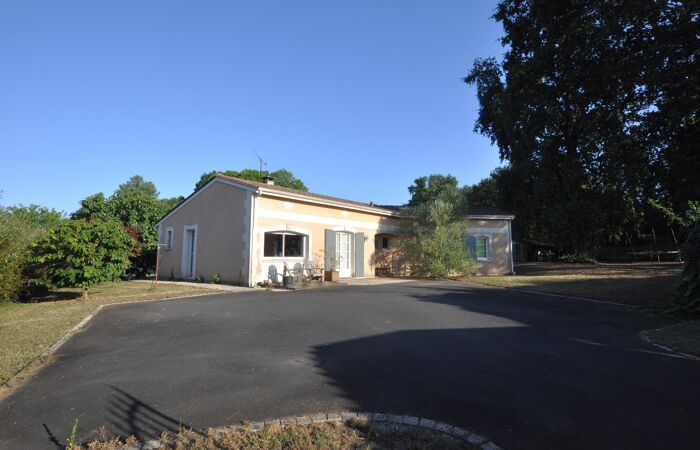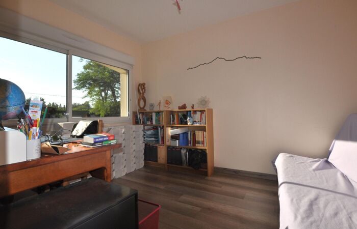Maison de plain-pied idéalement implantée EST/OUEST sur un beau terrain de 1 255 m² composée d'1 cuisine aménagée et équipée ouverte sur salon avec poêle à bois, 1 bureau, 1 cellier, 1 entrée de service, 1 dégagement, 1 coin bureau, 4 chambres dont 1 avec dressing, 1 salle d'eau ; terrasse à l'EST.