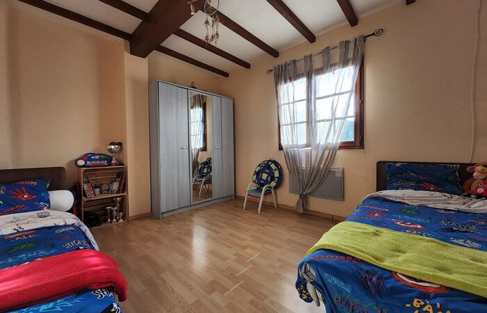 Un maison de plain-pied qui se compose d'1 cuisine aménagée et équipée, 1 salon double, 1 couloir, 3 chambres, 1 salle de bains et 1 salle d'eau, 1 WC, pour une organisation intérieure fonctionnelle au quotidien.