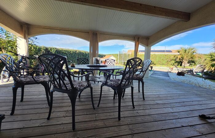 A l'extérieur, profitez d'1 terrasse couverte prolongée par son corridor et agrémentée d'1 piscine ;
