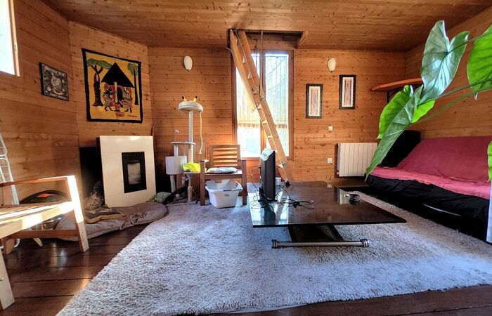 Cuisine aménagée et équipée, salon avec poêle à granulés, créent une atmosphère cosy.