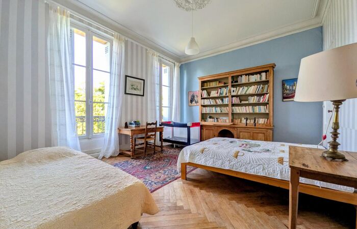 Nichée sur un parc arboré majestueux, cette propriété offre un cadre de vie hors du commun comprenant une spacieuse entrée, cuisine, WC , vestiaire,cave, bureau, à l'étage 4 chambres offrant de beaux volumes et une luminosité naturelle et 2 salles d'eau