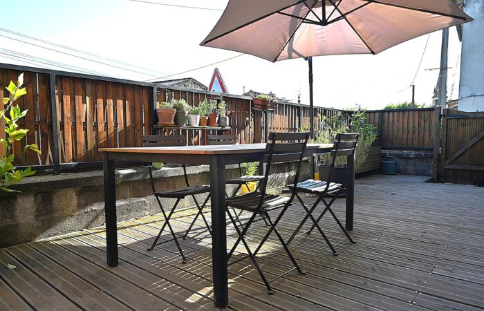 A l'extérieur, vous profiterez d'1 agréable terrasse exposée plein SUD, s'étendant sur environ 24 m² avec cabanon.
