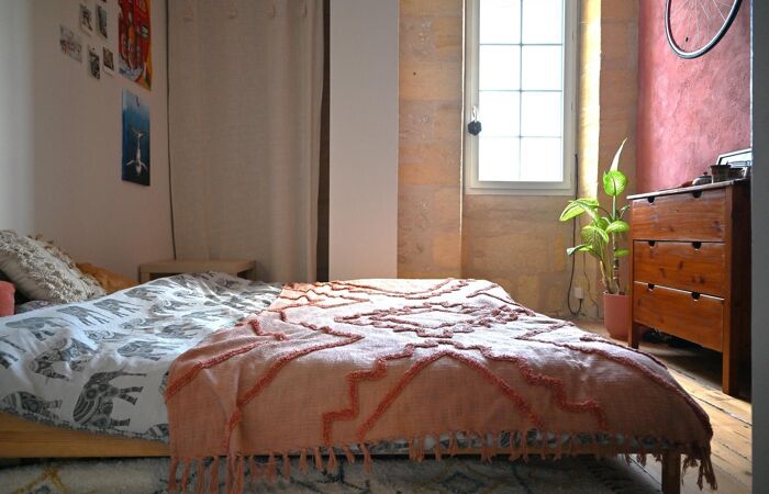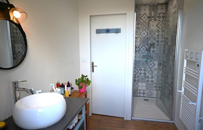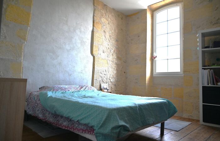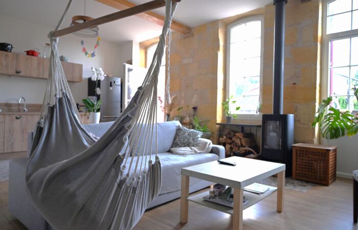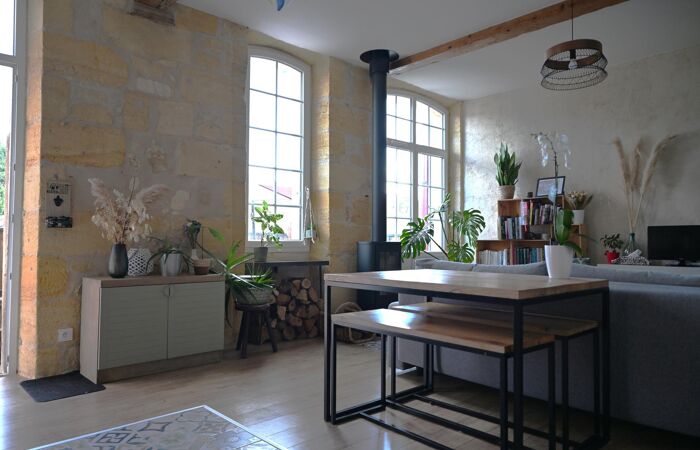 Dans le corps principal d'une maison de bourg du XIXème siècle rénovée avec goût, cette belle habitation allie charme de l'ancien et confort moderne.