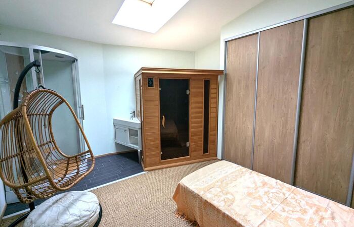 Au cœur du village médiéval, superbe bâtisse du XIIème siècle, repensée par architecte dans les années 90 et offrant de beaux volumes et une belle luminosité - Elle se compose au rez-de-chaussée d'1 entrée, bureau ; au 1er étage 1 salon avec cheminée, 1 cuisine aménagée ouverte sur le séjour ; le tout donnant sur une terrasse plein SUD, 1 WC, 1 suite (chambre, salle d'eau avec WC et mezzanine) ; au dernier étage 1 couloir, 1 salle de bains avec WC, 2 chambres avec mezzanine donnant sur une terrasse, 1 chambre avec SAUNA ; jardinet et piscine.