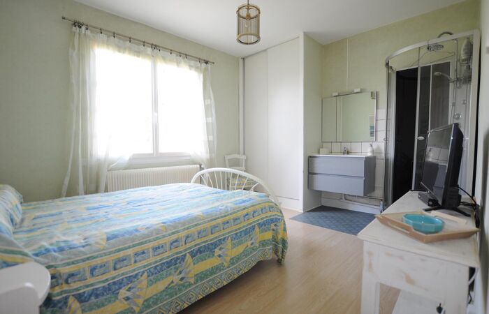 Sa rénovation de qualité avec réaménagement des espaces afin de les ouvrir vers le jardin arboré comprend 1 cuisine aménagée et équipée et 2 salons pour une surface d'environ 60 m², 1 WC, 1 cellier ; à l'étage 4 chambres belles chambres, 1 salle d'eau, 1 WC ; balcon, terrasse et piscine bois semi enterrée.