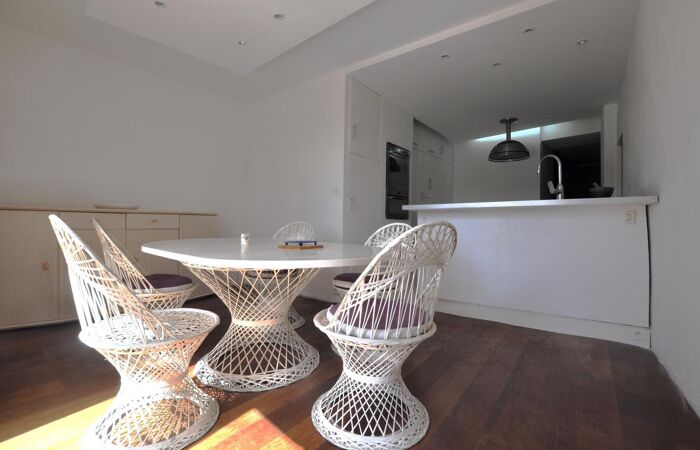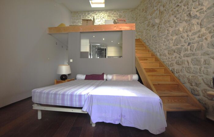 Au cœur du village médiéval, superbe bâtisse du XIIème siècle, repensée par architecte dans les années 90 et offrant de beaux volumes et une belle luminosité - Elle se compose au rez-de-chaussée d'1 entrée, bureau ; au 1er étage 1 salon avec cheminée, 1 cuisine aménagée ouverte sur le séjour ; le tout donnant sur une terrasse plein SUD, 1 WC, 1 suite (chambre, salle d'eau avec WC et mezzanine) ; au dernier étage 1 couloir, 1 salle de bains avec WC, 2 chambres avec mezzanine donnant sur une terrasse, 1 chambre avec SAUNA ; jardinet et piscine.