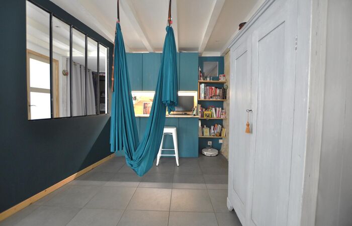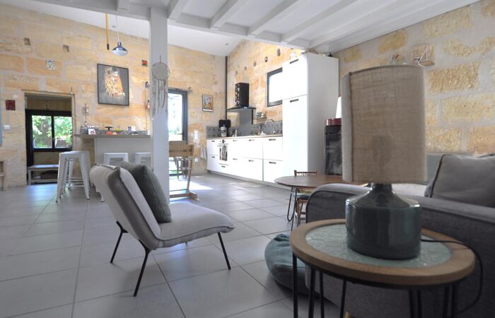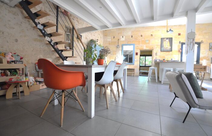 Rénovation de qualité pour cette maison de bourg offrant au rez-de-chaussée 1 entrée, 1 cellier, 1 WC, 1 suite parentale, 1 espace de vie avec 1 salon agrémenté d'1 poêle à pellets, 1 cuisine aménagée et équipée ouverte, ainsi qu'1 bureau et 1 salon ; à l'étage 1 bureau, 2 chambres et 1 salle de bains avec WC ; sans vis-à-vis. Découvrez cette habitation fonctionnelle, pleine de charme et de caractère.