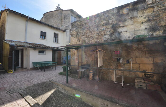 Maison de bourg en pierre élevée sur 2 niveaux comprenant au rez-de-chaussée 2 salons, 1 cuisine, 1 salle d'eau avec WC ; à l'étage 1 palier, 3 chambres, 1 emplacement dressing, 1 salle d'eau avec WC ; très agréable cour et garage. Proche bus, commerces, ses atouts sont nombreux.