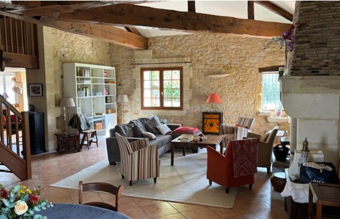 Rénovée, elle offre tout le confort moderne tout en conservant le cachet des pierres apparentes et des volumes généreux : cuisine 23 m², salon avec charpente apparente de 58 m² ; mezzanine, 4 chambres dont 1 avec salle d'eau, salle d'eau et WC ; agrémentée d'1 buanderie et 1 bureau annexe.