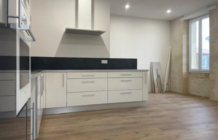 Rénovation totale pour cette habitation de 69 m² comprenant 1 cuisine aménagée et équipée ouverte sur salon, 1 couloir, 1 cellier, 1 WC, 1 salle d'eau, 2 chambre ;