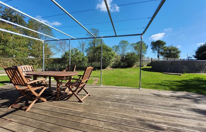 Le tout agrémenté d'1 garage de 30 m² non attenant, 1 belle terrasse bois de 50 m² et implanté sur une parcelle de 1 494 m² clôturée.