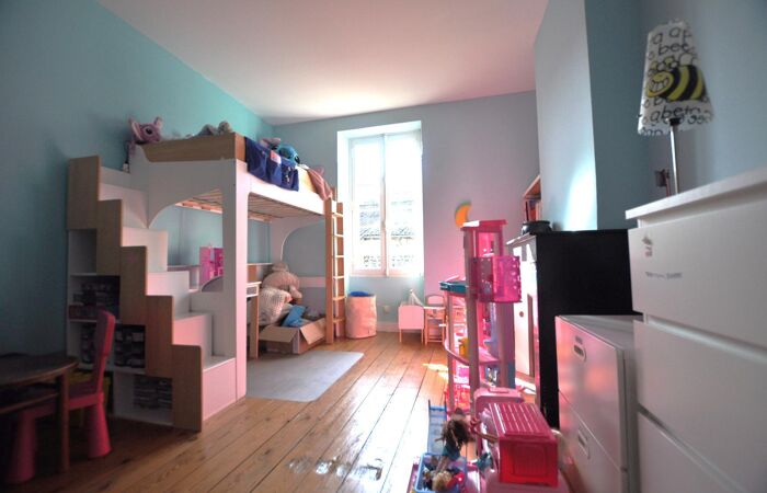 Elevée en rez-de-chaussée d'une cuisine aménagée et équipée ouverte sur salon et donnant sur une cour sans vis-à-vis avec débarras ; à l'étage un palier desservant 3 chambres dont 1 avec mezzanine, un WC et une salle d'eau.