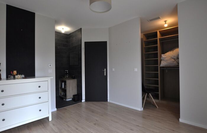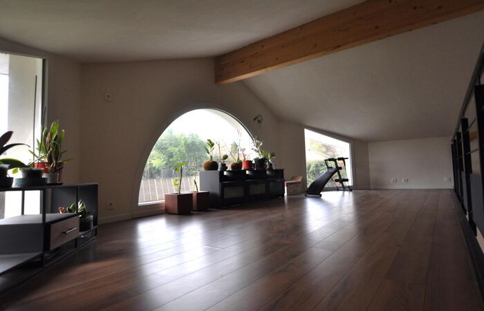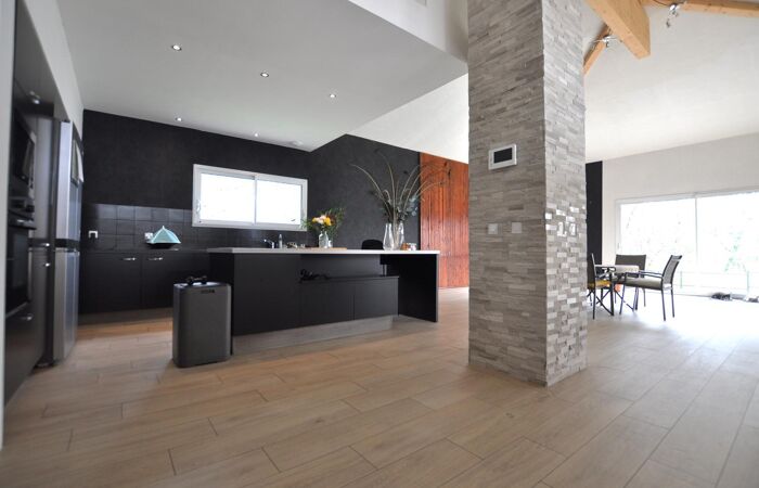 Dans un environnement calme, cette construction contemporaine séduit par ses beaux volumes habitables et sa luminosité. Composée d'1 entrée, 1 vaste pièce à vivre : cuisine aménagée et séjour de 68 m², 1 salon de 38 m² avec poêle à bois, ainsi qu'1 mezzanine de 22 m² idéale pour un espace bureau ou détente, 1 cellier, 1 couloir, 3 chambres dont 1 suite parentale avec salle d'eau et dressing, 1 WC, 1 grande salle de bains ; terrasse attenante et non attenante couverte bois ; le tout sur un terrain clos de 1 306 m².