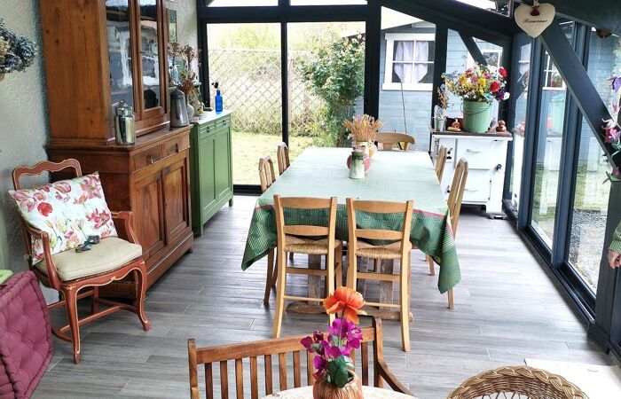 La maison est composée d'une entrée reliant 1 séjour lumineux, 1 cuisine équipée et fermée, 1 cellier, 1 buanderie, ainsi qu'1 pièce de 19 m² attenante à la véranda pouvant servir de bureau voire 5 ème chambre.