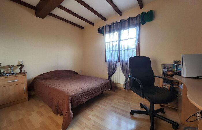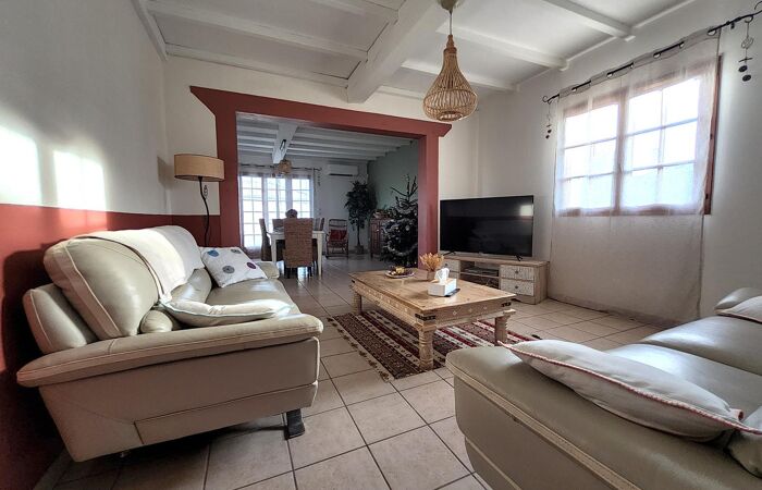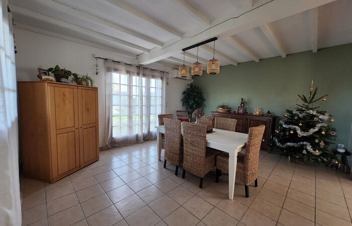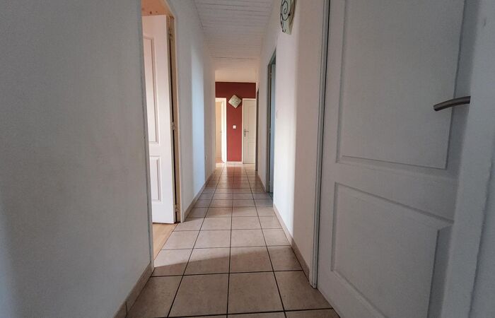 Un maison de plain-pied qui se compose d'1 cuisine aménagée et équipée, 1 salon double, 1 couloir, 3 chambres, 1 salle de bains et 1 salle d'eau, 1 WC, pour une organisation intérieure fonctionnelle au quotidien.