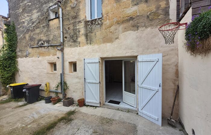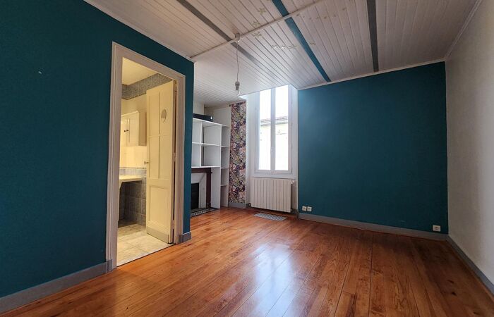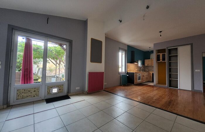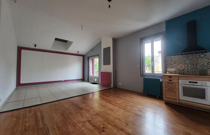 Maison centre bourg élevée en rez-de-chaussée d'1 entrée, 2 chambres, 1 salle d'eau, 1 WC ; à l'étage 1 palier, 1 chambre avec cabinet de toilette, 1 cuisine aménagée et équipée ouverte sur salon ; terrasse, place de stationnement et jardinet.