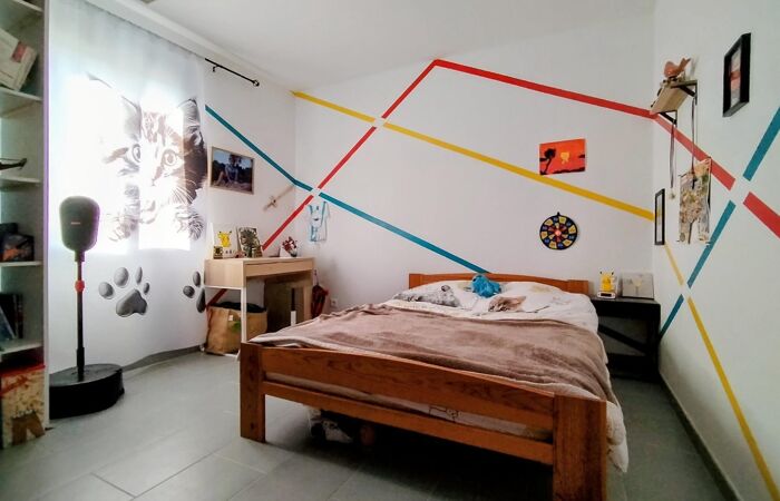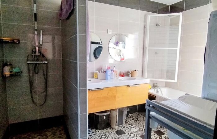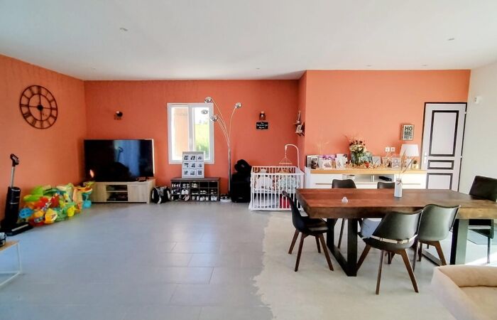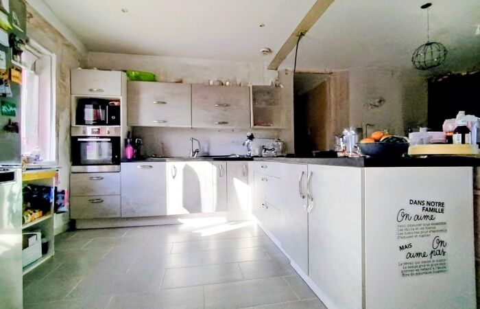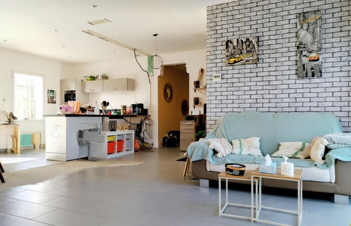 Maison familiale rénovée en 2019, proche de langon et Sauveterre de guyenne, comprenant une entrée, une cuisine ouverte équipée sur un salon, un couloir desservant une chambre parentale avec dressing, un WC, une salle d'eau avec baignoire et 3 chambres.