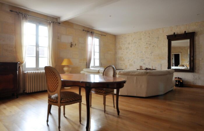 Belles prestations pour cette maison en pierre de 196 m² habitables comprenant en rez-de-chaussée un pièce de vie de 45 m² (anciens bureaux), 1 grande cuisine, 1 cellier, 1 chambre ;