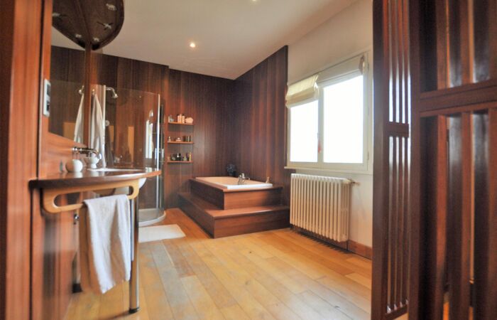 A l'étage vous serez séduits par les volumes de la salle de bains, du dressing ouvrant sur une chambre de 29 m² et une pièce de 47 m² (possibilité 2 chambres).