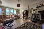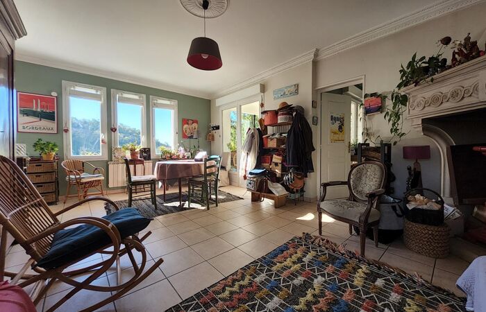 Maison des années 60 assurant une construction traditionnelle et de qualité. Elle offre des espaces de vie tournés vers la nature et lumineux, séjour avec poêle de masse, cuisine séparée, 3 chambres et bureau.
