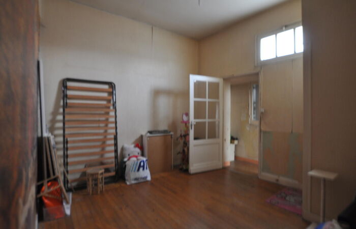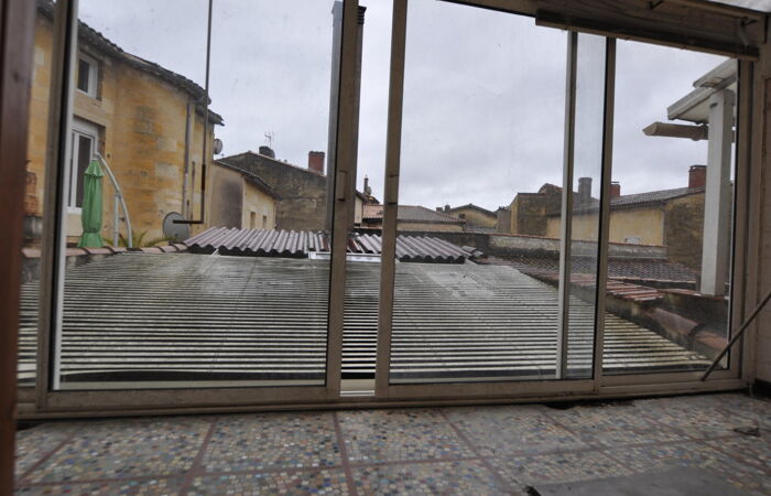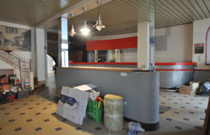 Immeuble situé en plein bourg de LANGOIRAN, comprenant en rez-de chaussée un ancien local commercial (ancien bar, licence 4 ok) composé d'une grande pièce de 63 m2, 1 cuisine avec chambre froide en état de fonctionnement, 1 buanderie, à l'étage : T5 d'environ 100 m2 comprenant 4 chambres, 2 salles d'eau, dressing, WC, 1 pièce ; terrasse couverte; libre de toute occupation.