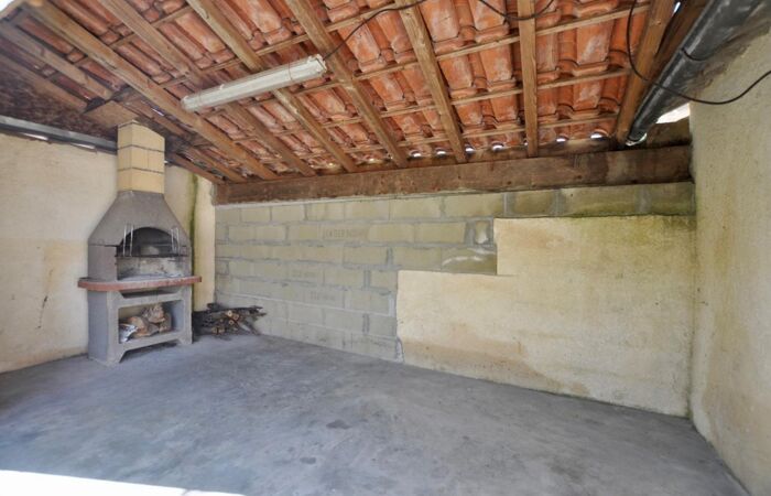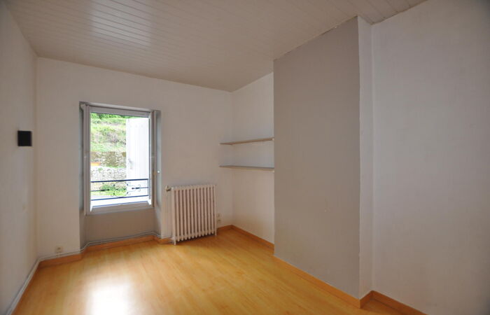 Une maison de bourg comprenant 1 entrée, 1 salon, 1 cuisine aménagée et équipée, 1 wc, 1 cellier ; à l'étage : 1 palier/bureau, 1 salle de bains, 1 couloir, 1 wc, 3 chambres ; 1 garage ; 1 abri ; le tout sur un terrain clos de 295 m².